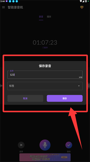 3、錄音結束后,輸入文件名稱并確認保存,音頻將自動存儲至本地指定目錄。