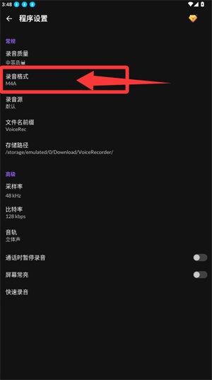 2、在“常規設置”中找到“錄音格式”選項并點擊進入。