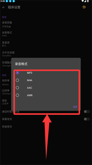 3、從列表中選擇所需格式(如MP3、AAC等),確認后新錄音將自動采用該格式保存。