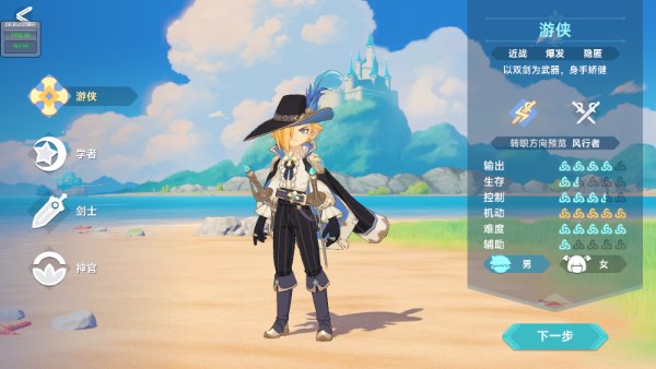 游俠:近戰物理輸出,雙劍在手,機動性與爆發力兼備,適合追求極限操作的高手玩家。上手難度:★★★★★