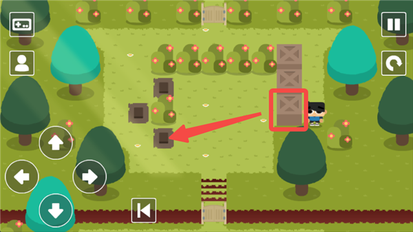 4、先將箱子推到機關上面,再從上面繞過去推到機關上